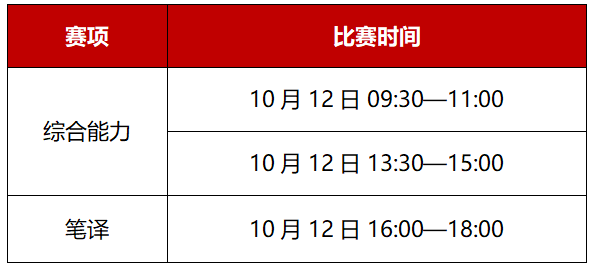 5.笔译赛项:报名截止时间为10月5日,比赛时间为10月12日16:00-18:00。