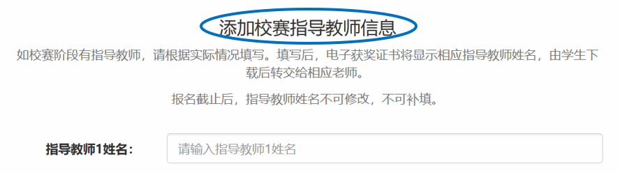 *报名截止后,指导教师信息不可修改,不可补填。