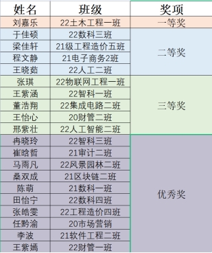 本次比赛分为预决赛和颁奖仪式两个环节,各院系近百名学生参与其中。经过激烈角逐,比赛最终评选出一、二、三等奖共十名,优秀奖十名。赛后,6月14日中午12:10我校于主教学楼1-2教室举行颁奖仪式,特邀大学外语教学部副部长赵媛媛和教师牛晓静为获奖学生颁奖,并与获奖者合影留念。