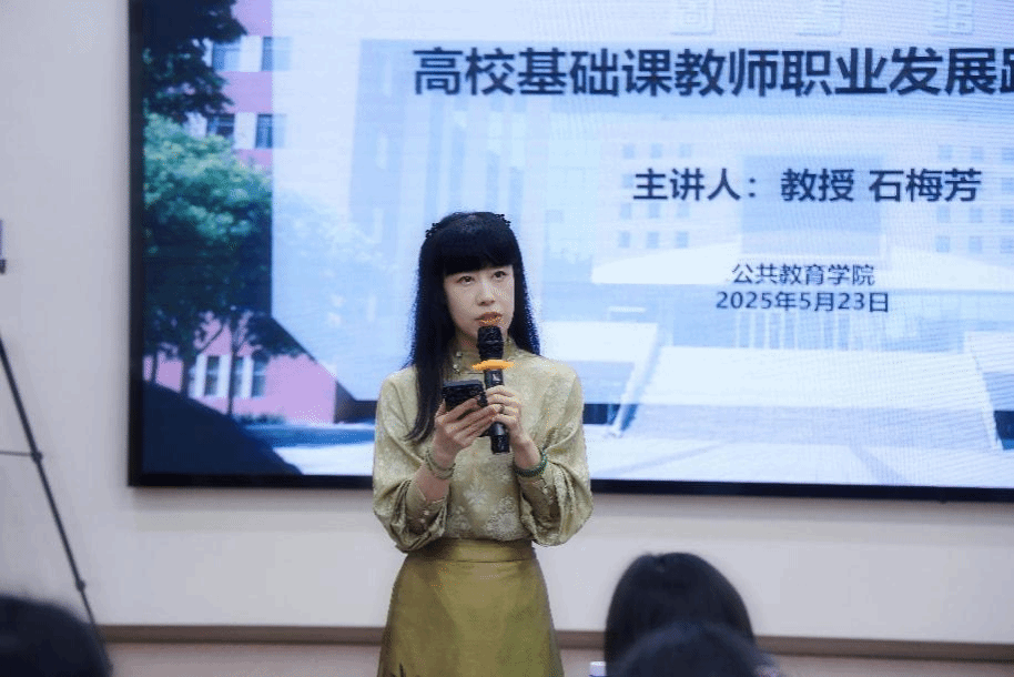 为积极响应河北省教育厅“周末专家河北行”活动倡议,借助京津专家智力资源,助力学校、学院高质量发展,为教师搭建高水平学术平台,提升公共学科内涵建设,2025年5月23日公共教育学院举办“周末专家河北行”学术交流活动。本次活动特邀河北工业大学外国语学院院长石梅芳教授为我院教师作了题为“高校基础课教师职业发展路径探索”的专题讲座。学院刘翠焕院长、李晓敏副院长出席讲座活动。本场讲座由副院长赵媛媛主持。