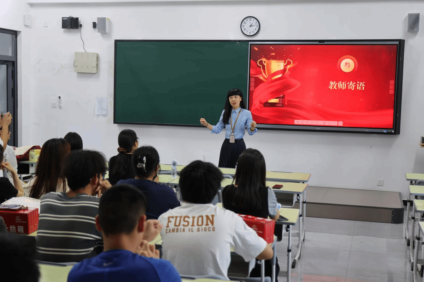 颁奖结束后,公共教育学院副院长赵媛媛对同学们发表了真挚的寄语。她先对获奖选手表示热烈祝贺,称看到学生们获奖深感欣慰,并说到此次大赛参赛、获奖人数比以往更多,同学们的卓越表现值得高度赞誉。最后,她殷切期望大家以此为新程,不懈奋进,传递和分享精神之光,引领建设优良学风,勇攀英语学习新高峰。仪式最后全体获奖选手和颁奖老师们共同合影留念。