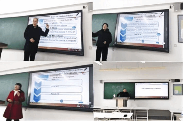 本次磨课研讨会采用的是集体评课议课方式进行。首先是教师说课展示。英语工科一类教研室王立宾、孟新颖、李环环、肖少华、杨磊5位教师们紧密结合本学期所授课程,围绕教学目标、教学设计、教学组织等关键环节,精心打磨教学课件,展现了他们独特的教学风采,彰显了教学方法和模式的创新,以及思政教育与教学内容的有机融合。