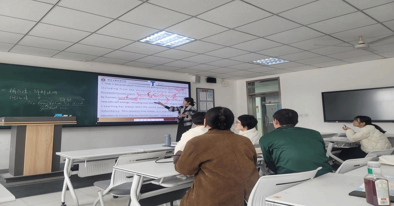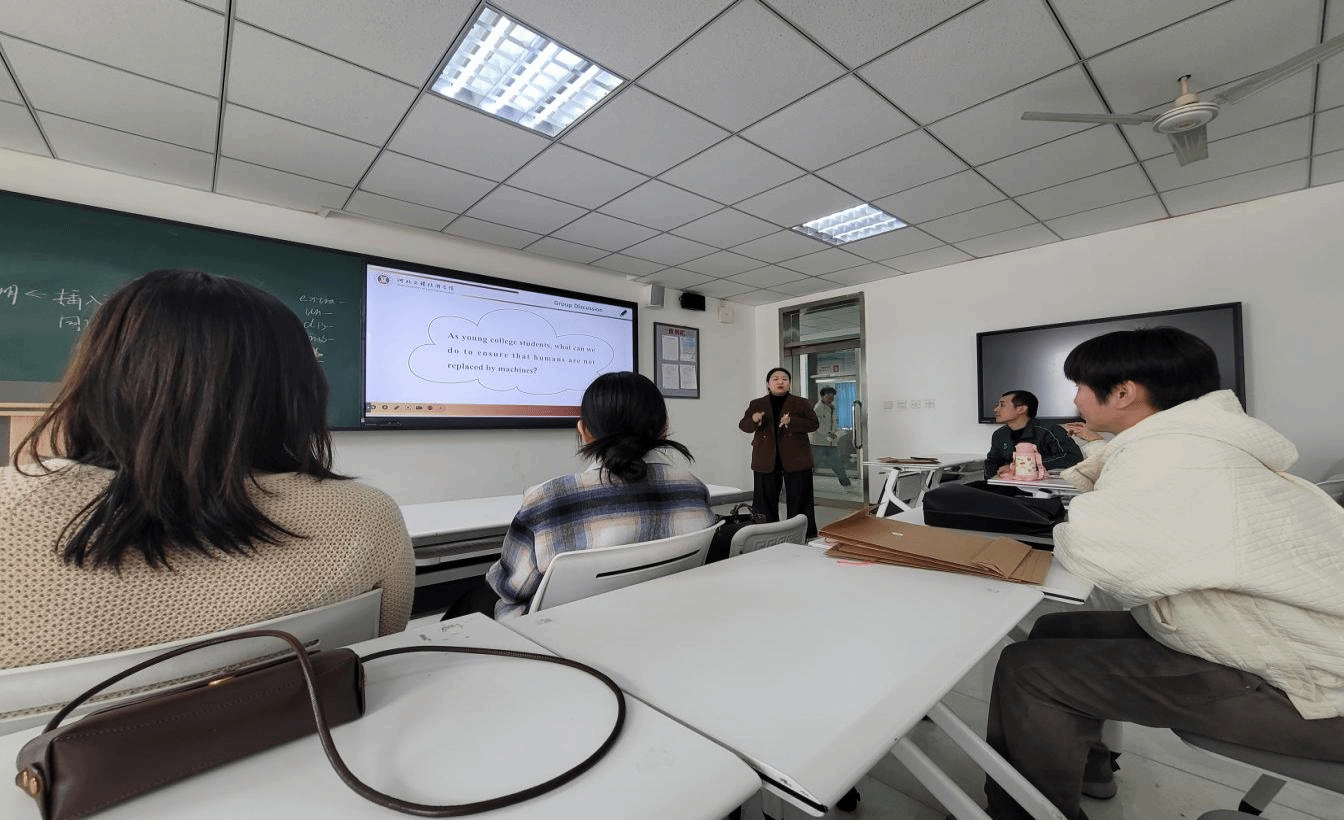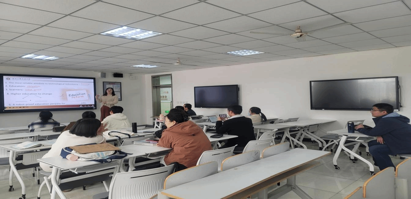 为深入贯彻落实新时代教育发展理念,推进新工科建设与教育数字化战略行动,3月14日下午,外语教学部英语工科二类教研室在4号楼203举办“人工智能与教育”主题专项研磨课活动。本次活动以“三全育人”综合改革为导向,通过教学创新实践深化内涵建设,着力构建具有高阶性、创新性和挑战度的“两性一度”金课体系。此次研磨课活动由教研室主任牛晓静老师主持,教研室全体教师参与。