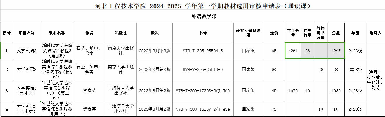 关于2024-2025学年第一学期外语教学部拟征订教材公示(2023级)